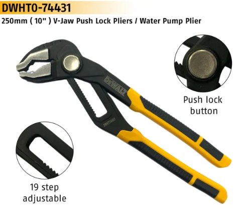Dewalt V-Jaw Push Lock Pliers Water Pump Plier -DWHT0-74431
